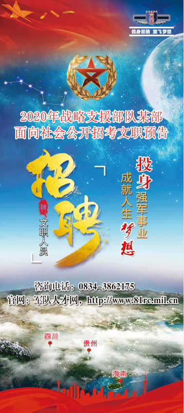 特别提醒:2020年文职招考相关工作以军队人才网公布为准。应聘必须通过军队人才网报名,请勿轻信其他形式的招聘。