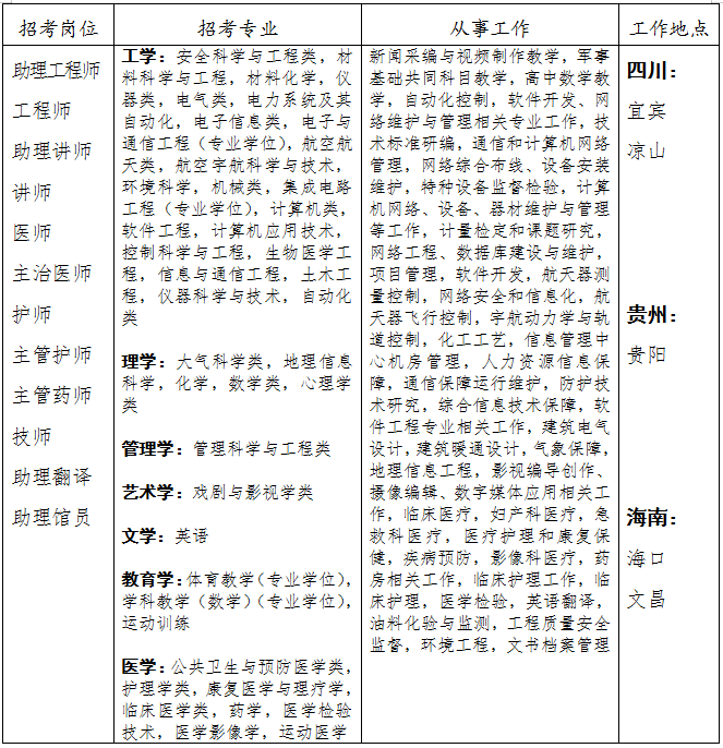 普通高等学校毕业生或社会人才,从事工程技术、医疗、教学、翻译、档案管理等文职人员岗位工作。