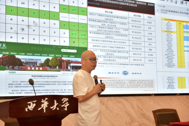 为深入贯彻学校“有组织科研”战略部署,精准对接教师科研成长需求,切实提升国家社会科学基金项目申报质量与人文社科研究水平,10月11日,经济学院在郫都校区集中开展国家社科基金申报专题系列学术活动,活动特别邀请云南大学教授、长江上游【流域】复合生态系统管理创新团队首席专家文传浩教授及其团队核心成员。本次活动通过学术报告、专题辅导会等形式,为经济学院等人文社科学院师生搭建起多层次、专业化的学术交流平台,全方位破解基金申报“痛点”“难点”。
