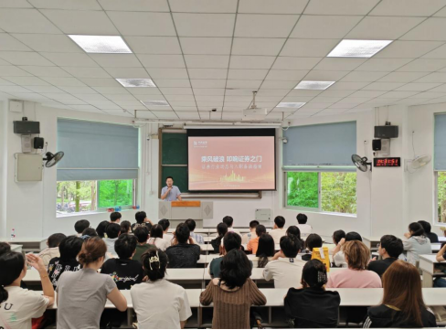 讲座伊始,代江平以2025年一季度证券市场数据为切入点,通过互动提问引导学生思考行业关键词。他深入剖析了当前市场格局,强调“风险管控”在震荡市中的核心地位,并指出在金融科技深度融合的背景下,证券行业正加速数字化转型,对复合型人才的需求持续升温。
