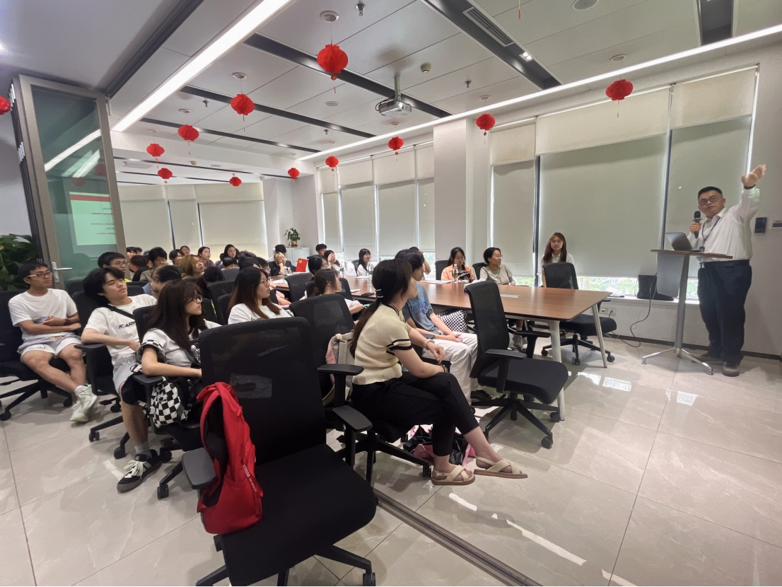 在交流分享环节,营业部资深投资顾问与校友围绕行业发展前景、岗位能力需求、职业成长路径等内容展开分享。校友结合自身工作经历,讲述了从校园到职场的转型心得,强调了扎实的专业基础、合规风控意识与持续学习能力在证券行业的重要性,同时就同学们关心的实习招聘、职业规划等问题进行了细致解答。
