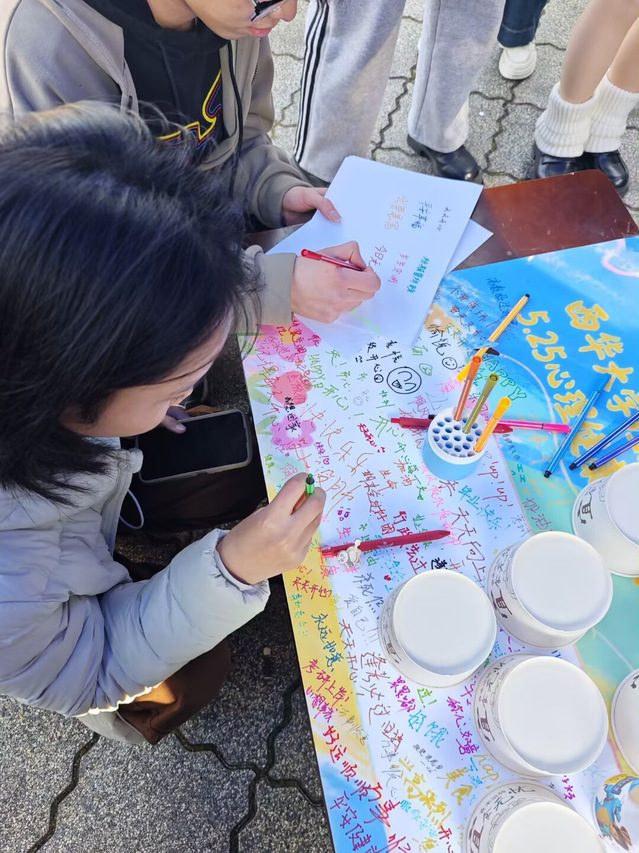 与此同时,情绪盲盒以学生抽取到的盲盒内的情绪为话题,在纸上画出自己对该情绪的想法,有利于表达学生自己的内心想法。此外,现场还有其他丰富多样的活动,各个环节都以心理健康为主题,传达出向上的健康力量。同学们在轻松安全的氛围中深度体验、真诚分享,纷纷表示这些活动像一面镜子,让自己对内心世界有了更清晰的认识。