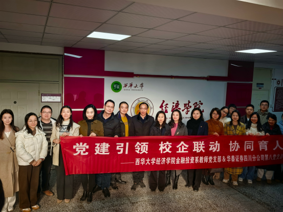 会议伊始,王蕊系统回顾了校企合作的阶段性成果。自2024年3月经济学院与华泰证券犀浦营业部(现成都交子大道营业部)首次对接以来,双方迅速推进合作。2024年5月签署校企战略合作协议,同步开展投资者教育讲座与“校企共建,共话未来”党建活动;2024年6月组织金融科技专业学生赴华泰证券认知实习,并联合启动暑期实习项目;2025年通过党支部联学共建、行业导师聘任、专题学术报告等形式深化合作,累计选拔20余名学生参与实习实践,形成“党建引领+专业赋能+就业贯通”的立体化合作模式。