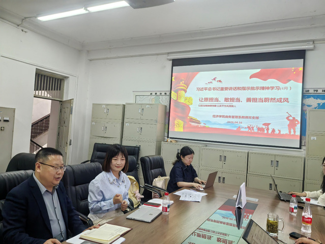 为深入学习贯彻习近平总书记关于担当的重要论述精神,引导全体教师党员强化责任意识、砥砺实干品格,近日,经济学院商务管理系教师党支部召开专题学习会议,围绕“让愿担当、敢担当、善担当蔚然成风”主题开展集中学习与交流研讨。会议由党支部书记何春燕同志主持,全体教师党员参加。